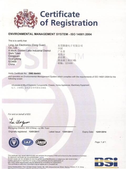 ISO Certified 9001 & 14001 / ROHS Compliant